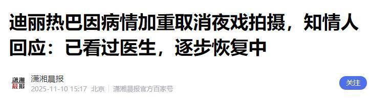 果不其然今天就有消息报道,迪丽热巴病情加重,无奈只能取消了夜戏的拍摄,部分积压的工作也暂时取消了。